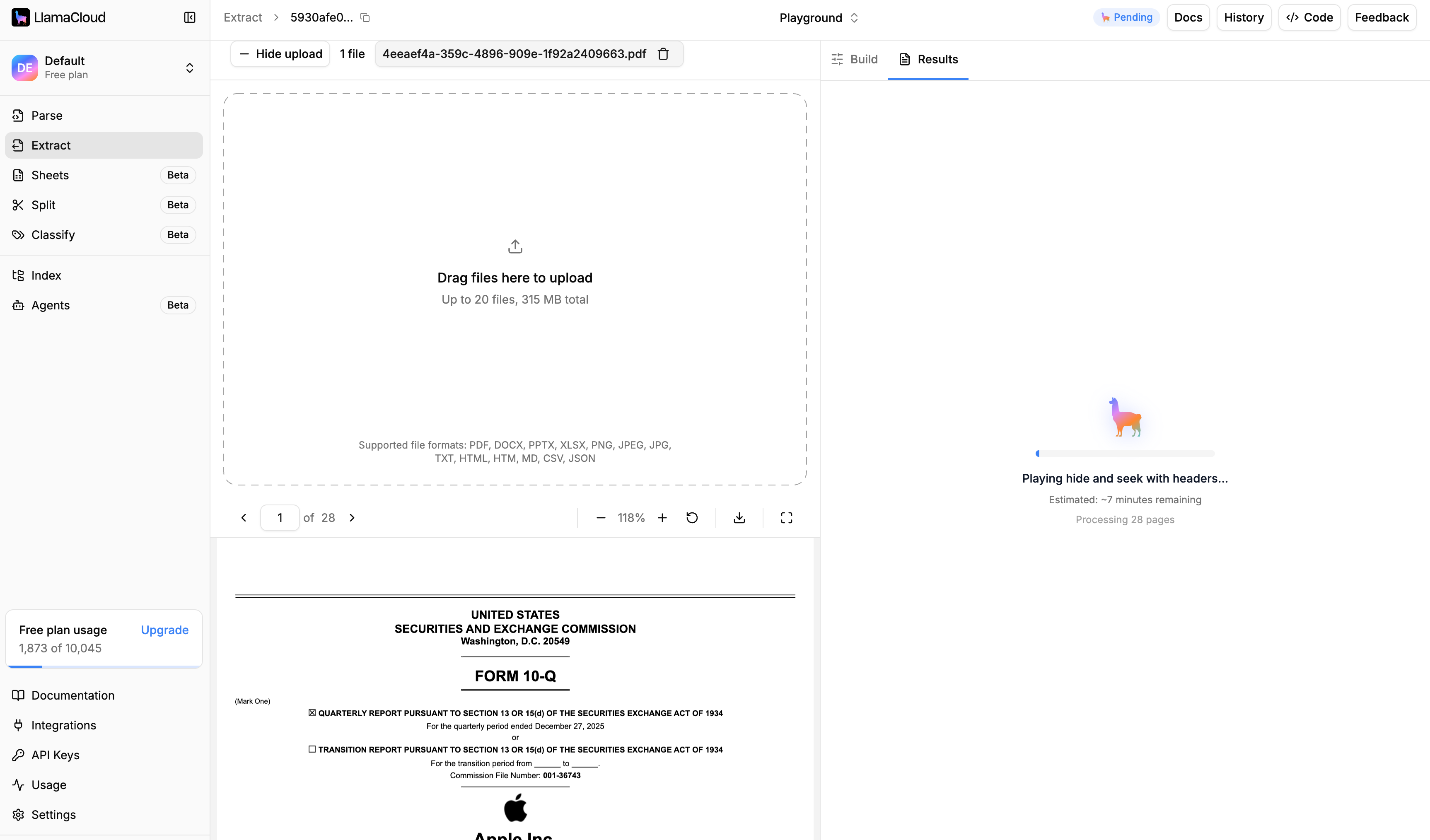 Page-Level Extraction in LlamaExtract solves this by treating each page as a discrete extraction unit while maintaining document-wide schema consistency. You define what you want to extract and get back structured results organized by page, complete with bounding boxes and citations.