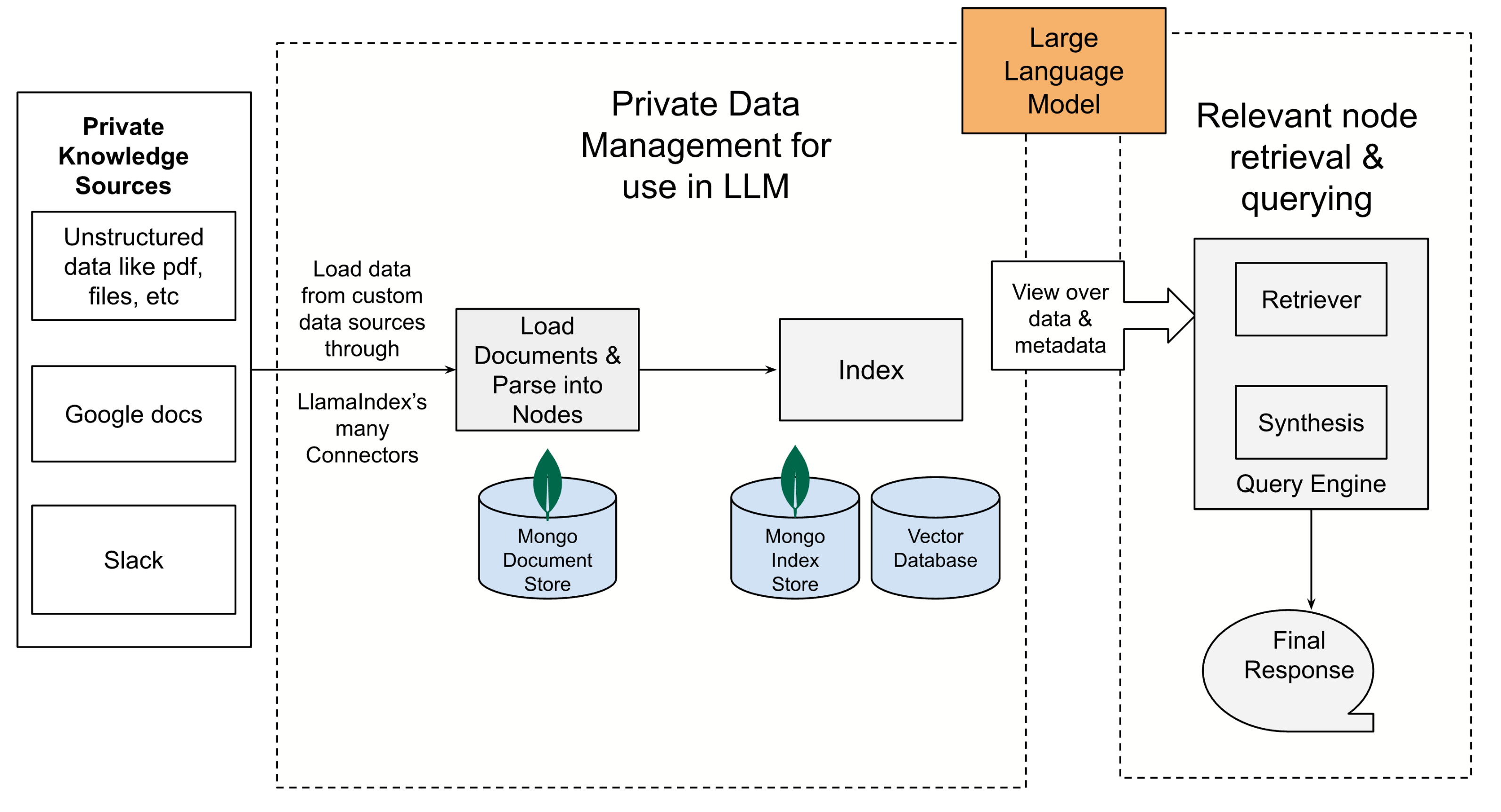 - Connect private knowledge sources using LlamaIndex connectors (offered through LlamaHub).
