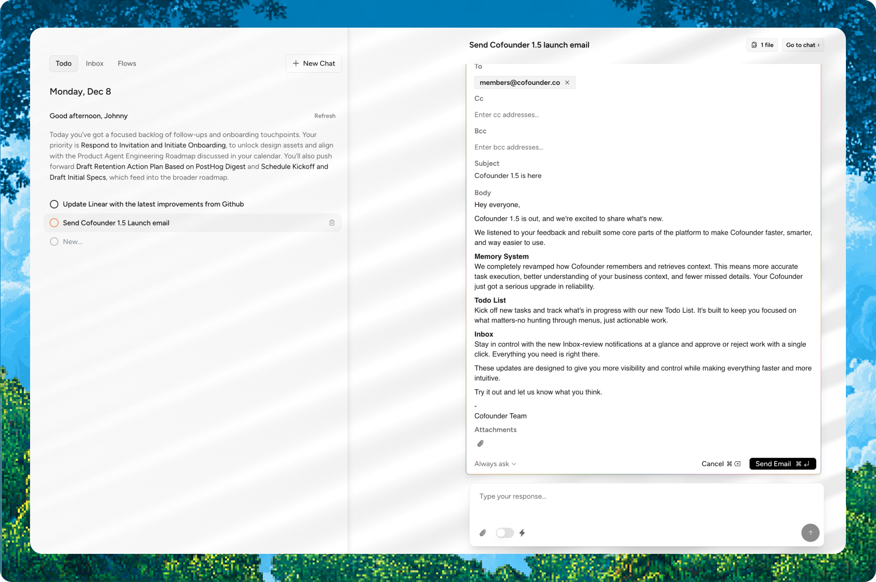 That foundation brings Cofounder one step closer to its long-term goal: enabling anyone to build and run a company with agents by their side.